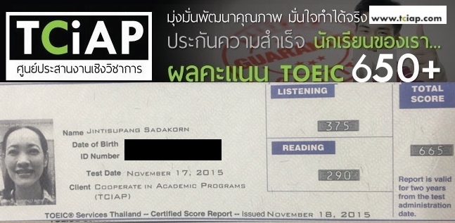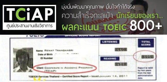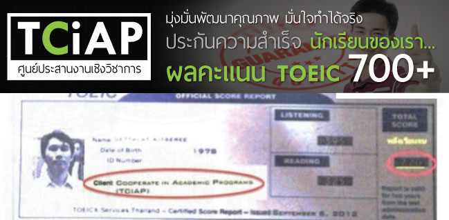 TCiAP ใช้ครูที่เชี่ยวชาญ TOEIC ผลคะแนน 990 เต็ม ดูแลผู้เรียน